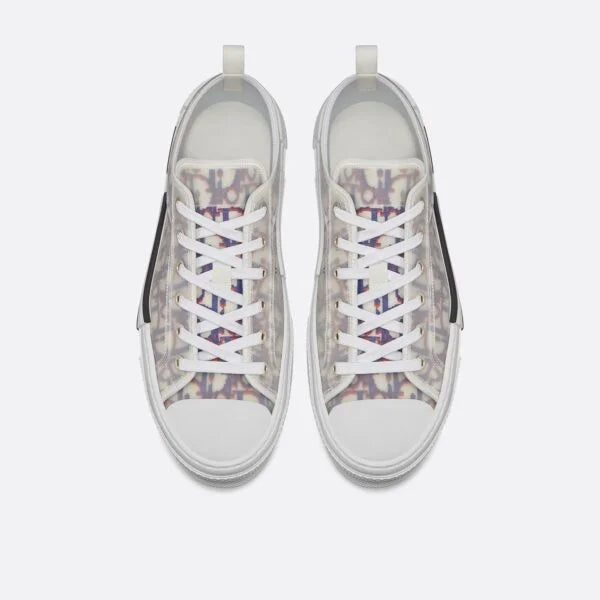 The B23 League low-top sneaker is set apart by its layering of transparent paneling and white and black Dior Oblique canvas. Essential details, such as eyelets and a lace-up front, a white and beige rubber sole, a rounded and reinforced toe as well as a rear tab recall the codes of the classic low-top style. The sneaker is further enhanced by contrasting details on the sides, including a Dior signature, and will pair easily with any casual outfit.